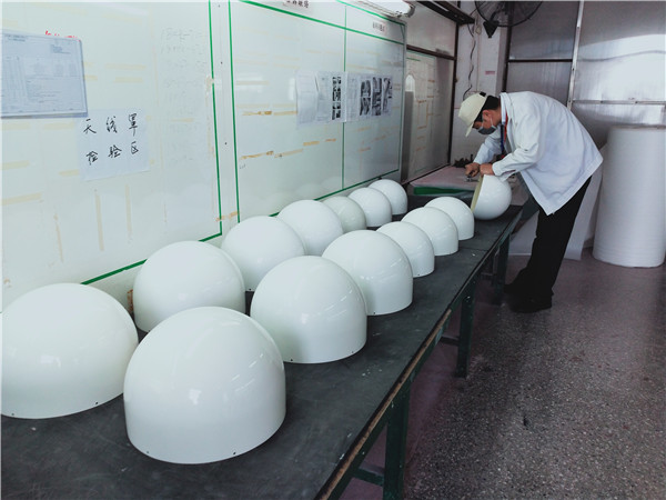 4.FRP采用衛(wèi)星天線罩專用樹脂,外表膠衣選擇白色彩色膠衣;纖維材料選擇無堿纖維。